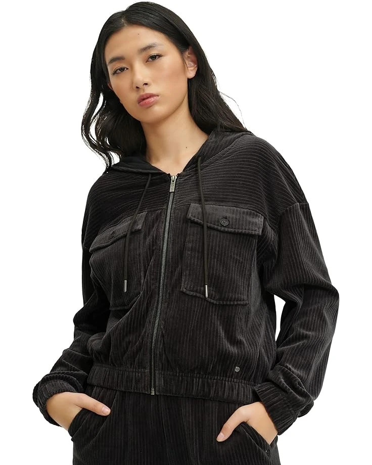 Keep it subtle and stay comfy wearing the UGG® Julissa Knit Courduoy Bomber Jacket.SKU: #9729594Attached hood and long sleeves.Zippered front closure.Two chest pockets with flap closure.Elasticized waistband and cuffs.Two side pockets.UGG® logo design on the center back.Self: 100% cotton;
