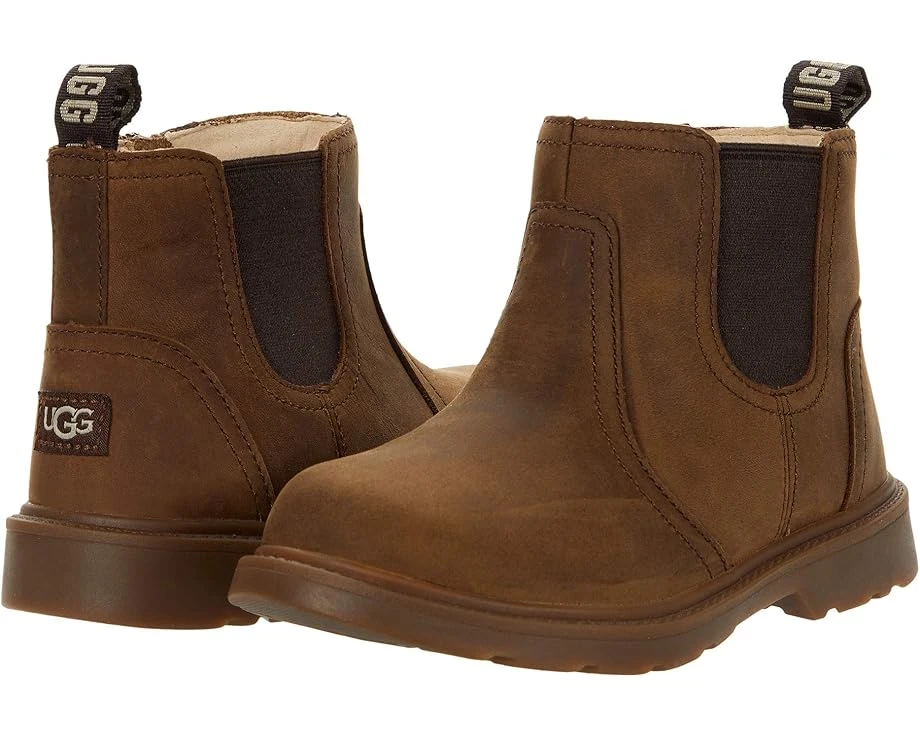 Update their everyday look with the sleek UGG® Kids Bolden slip-on Chelsea boot. These kids’ boots are crafted from waterproof leather uppers with sealed seams to keep your little one cozy and dry.SKU: #9399210Fortified to provide premium protection in light-to-moderate weather conditions.Featuring a lining, cushioned footbed, elastic goring at the sides, side zip closure, and traction-enhancing outsoles.